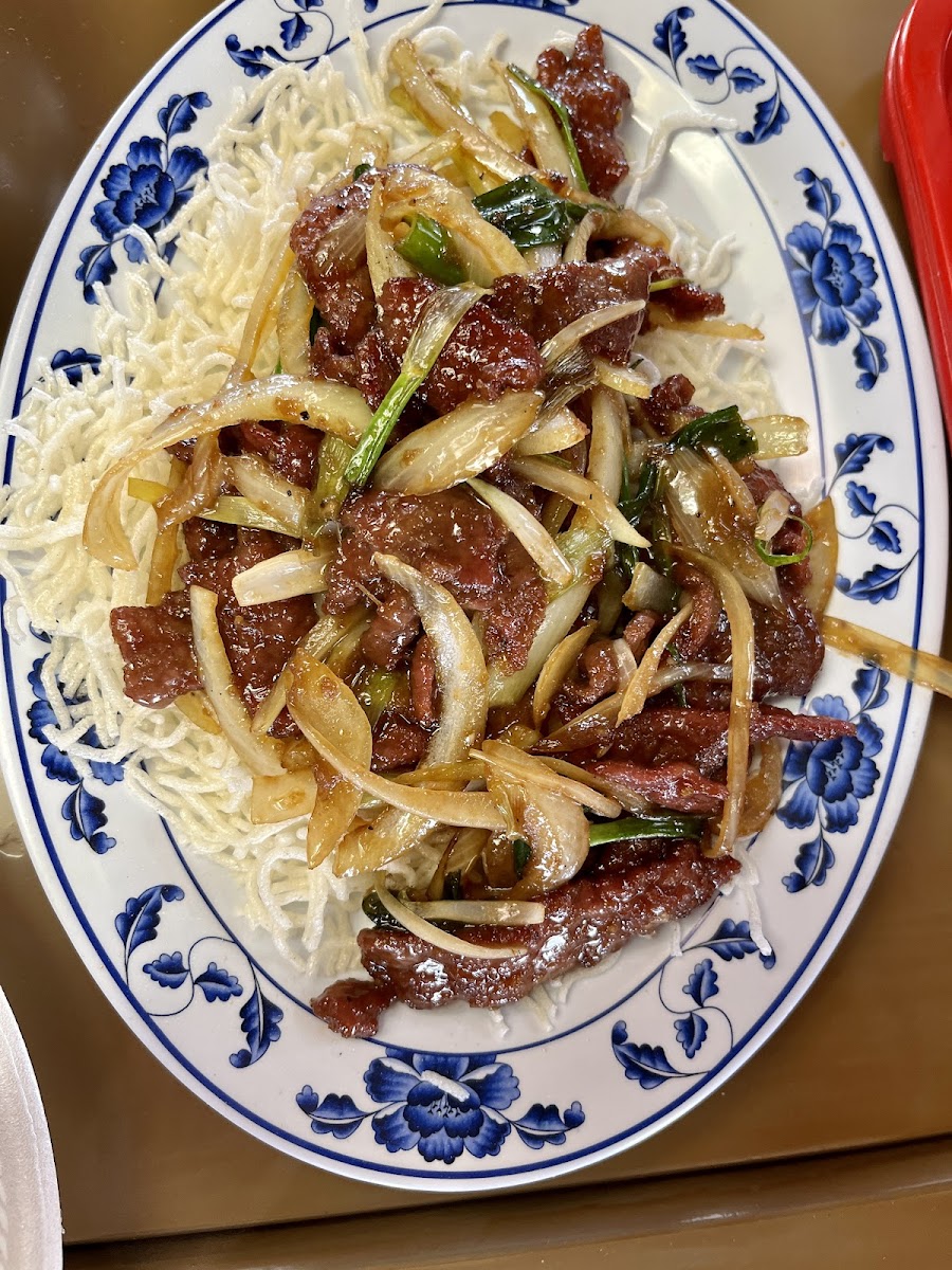 Noodles have a nice chew to them, they are served plain and your sauce on the side. I don't eat sea food so I was only able to choose between beef or pork, either way the sauce would be the same--black bean. Personally, im not a black bean person. I like more spice to my food. I'd say black bean sauce is like a very thick almost sour sauce flavor. It does have zucchini and onions, lots. Next time I'll skip the noodles but not that there's anything wrong with them! We also got the Mongolian beef which we loved! We ordered the "dinner" size which came with a side of rice but our rice didn't include bean sprouts so this must just be the "vegetable", if you like meat in it you'll need to let them know, there may be an upcharge, I'll find out next time! The last thing we got were the egg rolls which I must say I also loved a lot! These are not your average rolls that have thick wrap, its very thin and crispy with lots of flavor. All in all, will come back and try other dishes :) P.s. please be patient with the staff